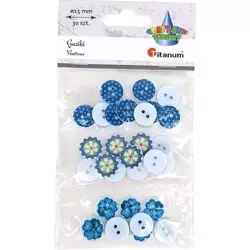 Guziki plastikowe okrągłe 15mm niebies mix 30szt - Titanum
