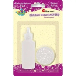 Zestaw klej z brokatem + brokat w słoiczku biały - Titanum
