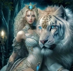 Diamentowa Mozaika Kobieta szafirowa królowa i biały tygrys NO-2000693 - Norimpex