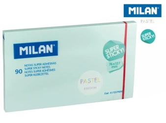 Karteczki samoprzylepne niebieski Milan super sticky pastel 127 x 76, 90 sztuk
