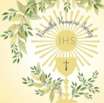 Karnet Swarovski kwadrat CL105 Komunia IHS Kielich - Clear Creations