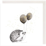 Karnet złocony kwadrat CL3814_BL Jeż z balonami - Clear Creations