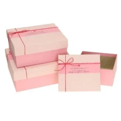 Pudełko prostokątne z kokardą 3szt różowy ROZETTE