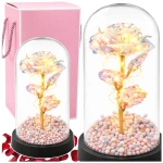 Wieczna Róża W Kopule Kryształowa Kolorowa LED - Leantoys