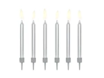 Świeczki urodzinowe gładkie srebrne 6cm 6szt - PartyDeco