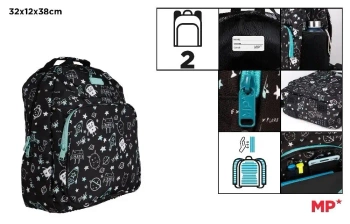 Plecak dwukomorowy Kosmos czarny 32x12x38cm - MP Main Paper