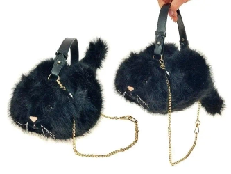 Torebka pluszowa Kot 28x20cm ze złotym łańcuchem - ADAR