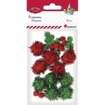 Pompony brokatowe czerwone, zielone 30szt - Titanum