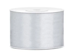 Tasiemka satynowa srebrna 50mmx25m - PartyDeco