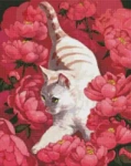 Diamentowa mozaika - Kot w piwoniach 40x50cm - Ideyka