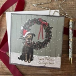 Karnet Święta kwadrat Pies i wieniec - Alex Clark