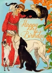 ( ilość produktów: 5919 )Karnet B6 z kopertą Urodziny Kobieta z psami i kot - Madame Treacle