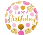 Balon foliowy Pink and gold Happy Birthday 46cm - Anagram