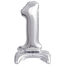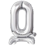 Balon foliowy mini cyfra 0 na stojaku srebrna - Amscan