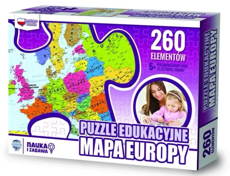 Puzzle z mapą Europy prezentują aktualny obraz polityczny kontynentu. Dzięki nim można opanować język geografii, poznając państwa, stolice, większe i istotniejsze miasta, a także szczegółowe linie hydrograficzne. Puzzle te są niezwykłą pomocą dla nauczania w dziedzinie geografii. Wykonane są z największą dbałością o treść merytoryczną oraz zgodnie z najwyższymi standardami technicznymi. To oznacza, że użycie wysokiej jakości materiałów gwarantuje trwałość i wygodne użytkowanie zabawki. Nauka geografii poprzez zabawę to doskonała metoda na przyswajanie wiedzy przez dzieci i młodzież. Układanie puzzle z mapą Europy staje się nie tylko rozrywką dla całej rodziny, ale także sprawdza się doskonale jako pomoc naukowa. Możemy wspólnie bawić się, ucząc się jednocześnie o Europie i jej geografii.Puzzle - idealny sposób na spędzenie czasu