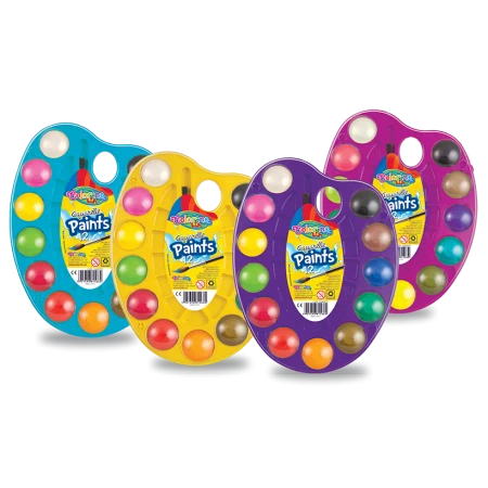 \n\nPaletka kolorowych, wodnych farb akwarelowych Colorino Kids to doskonały wybór dla miłośników malowania na papierze. Paleta jest niezwykle wygodna w użyciu, dzięki miejscom przeznaczonym do mieszania kolorów. Znajdziesz w niej 12 soczystych i intensywnych odcieni, które pozwolą Ci na stworzenie prawdziwego, małego dzieła sztuki! Tabletki farb mają średnicę 30 mm, zapewniając długotrwałe użytkowanie. Colorino Kids to twój kreatywny partner w podróży do świata kolorów i wyobraźni!EAN: 5907690815660