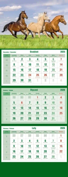 Kalendarz 2026 trójdzielny Konie - praca zbiorowa