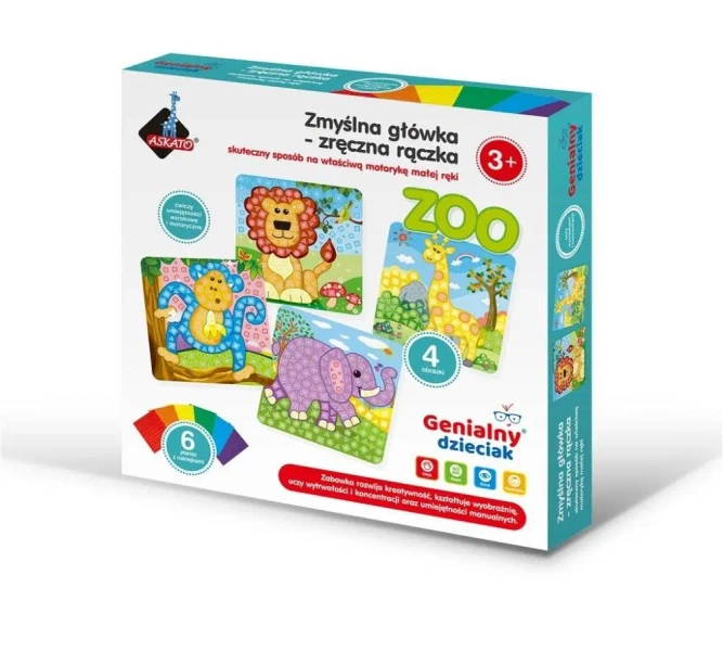 Prezentujemy idealną zabawkę dla dzieci w wieku powyżej 3 lat - piankową wyklejankę Zwierzatka od marki Askato. Zestaw składa się z 4 różnych obrazków przedstawiających zwierzęta oraz aż 700 kolorowych elementów do wyklejania, dzięki czemu dzieci mogą twórczo wykorzystać swój czas, rozwijając jednocześnie swoje umiejętności manualne.
