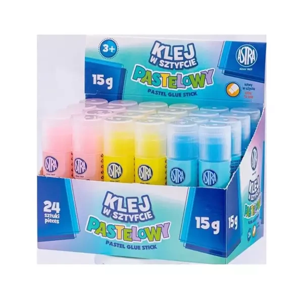 Klej w sztyfcie 15g transparenty pastelowy (24szt) - ASTRA papiernicze