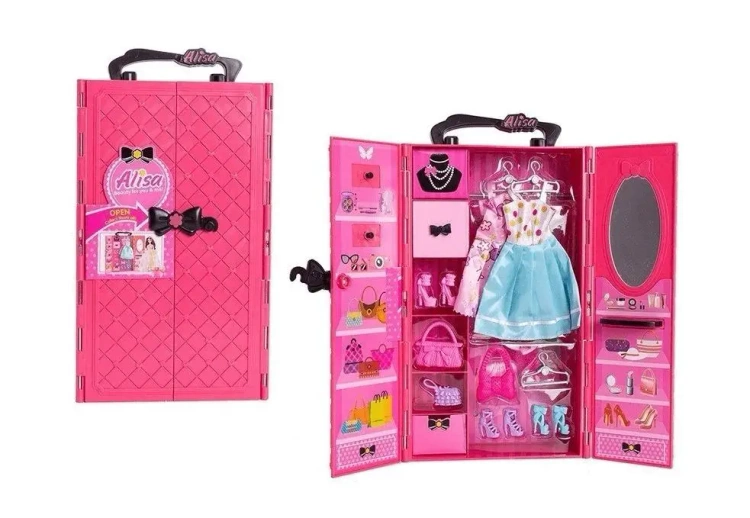 Garderoba z różowymi elementami w zestawie to świetny wybór dla małych miłośniczek mody. Komplet zawiera wszystko, czego potrzeba, aby uzupełnić stylizacje lalek: od ubrań po dodatki, takie jak buty czy torebki. Składa się z trzech eleganckich sukienek, trzech par modnych butów oraz dwóch stylowych torebek.Ubierz swoją laleczkę w różnorodne stroje
