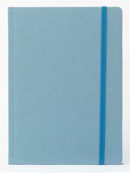 Notatnik Pro-M z jasnoniebieskiej serii Like U posiada elastyczną, szytą oprawę. Twarda okładka wykonana z wysokiej jakości włoskiego poliuretanu gwarantuje długotrwałą świetność i odporność na zużycie czy zniszczenia.Dodatki