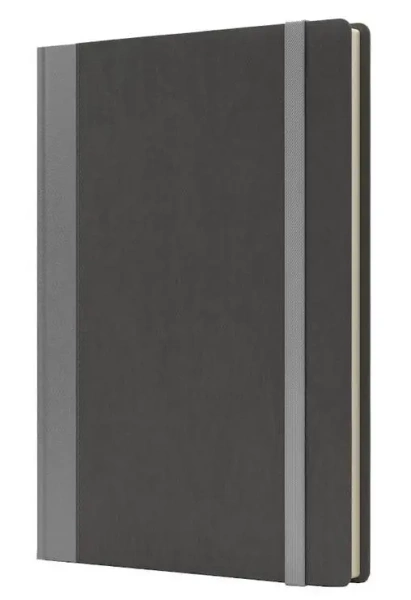 Oprawa składa się z wytrzymałego włoskiego poliuretanu, który jest jednocześnie elastyczny i wytrzymały na zniszczenia. Pionowa gumka zabezpiecza notatnik przed niechcianym otwarciem, a zaokrąglone rogi gwarantują bezpieczne użytkowanie. Dzięki twardym okładkom, notatnik będzie prezentować się estetycznie przez długi czas.