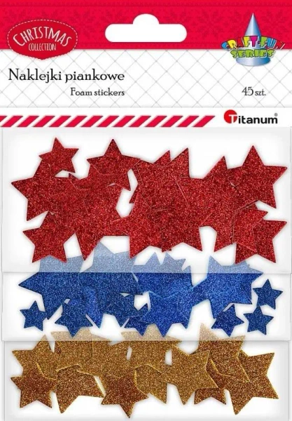 Naklejki piankowe brokatowe gwiazdki mix 45szt. - Titanum