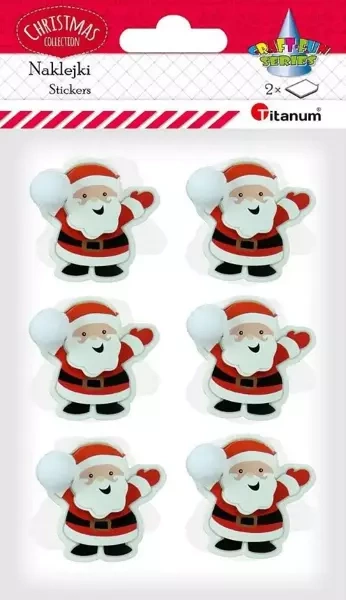Naklejki papierowe 3D czapki Mikołaja 12szt - Titanum
