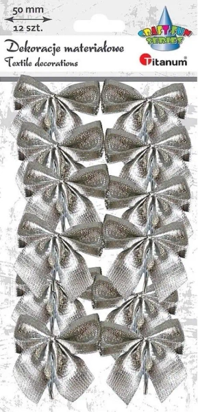 Kokardy materiałowe z serii Titanum cechują się solidnością i starannym wykonaniem. Ich trwałość sprawia, że ozdoby te będą służyć przez wiele sezonów. Srebrny kolor kokard dodaje im elegancji i sprawia, że pasują do różnych stylów wnętrz.Kokardy w srebrnym kolorze - uniwersalne ozdoby na różne okazje
