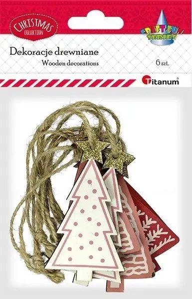 Drewniane zawieszki choinki kolorowe 6szt - Titanum