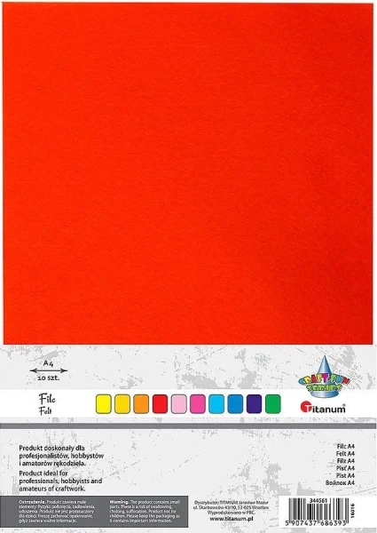Prezentowany dekoracyjny filc od marki Titanum to produkt idealny do wszelkich prac plastycznych i kreatywnego wykorzystania. Oferowany w formacie A4, cechuje się wysoką jakością wykonania i ciekawym zestawem kolorystycznym. Grubość materiału wynosi 2 mm, co gwarantuje trwałość i odporność na uszkodzenia. Wspomniane cechy sprawiają, że filc doskonale sprawdza się w różnych projektach i dekoracjach. Dodatkowo, gramatura materiału równa się 200 g, co gwarantuje, że będzie on nadawał się również do mocniejszych konstrukcji. Produkt dostępny jest w kolorze mix, co pozwala tworzyć interesujące aranżacje i kompozycje. Odkrywaj nieograniczone możliwości zgromadzone w dziesięciu różnych odcieniach filcu. Szerokie zastosowanie dekoracyjnego filcu, zarówno na potrzeby szkolne, jak i domowe, umożliwia realizację różnorodnych pomysłów i projektów. Z pewnością przypadnie do gustu miłośnikom wszelkich form twórczych.EAN: 5907437686393