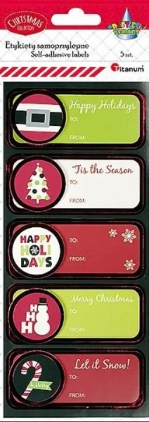 Samoprzylepne karnety prezentowe. Wykończone papierowym dekorem na piance 3D. Wymiary etykiety: 90x38mm. Kolekcja bożonarodzeniowa. 5 etykiet.