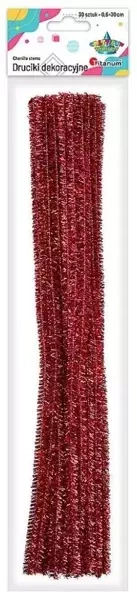 Zaprezentowany produkt to czerwone druciki metalizowane, które mają wymiary 0,6 x 30 cm. W ofercie otrzymujesz aż 30 sztuk tych praktycznych i atrakcyjnych wizualnie elementów do różnorodnych zastosowań.