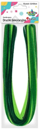 Prezentowane druciki kreatywne to zestaw, który pomaga w tworzeniu różnorodnych dekoracji i ozdób. Wyróżniają się swoją zieloną kolorystyką, dzięki której idealnie wpasują się w kompozycje przygotowane na różne okazje.Wymiary i ilość drucików w zestawie