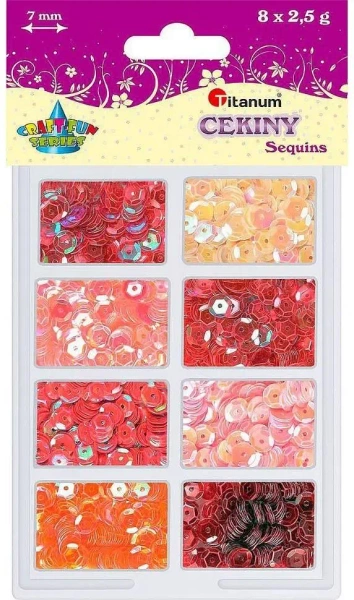 Cekiny 7mm 8 kolorów x 2,5g różowo-czerwone - Titanum