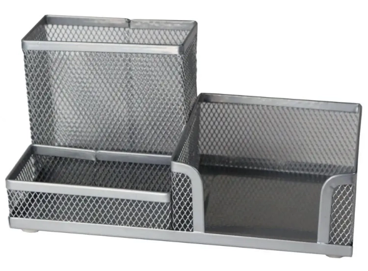 Przybornik na biurko siatkowy to doskonałe rozwiązanie dla osób, które cenią sobie porządek i estetyczny wygląd swojego stanowiska pracy. Wykonany z metalowej siatki, pokrytej lakierem o srebrnym kolorze, sprawia, że produkt prezentuje się niezwykle efektownie. Wymiary przybornika to szerokość 20 cm, wysokość 9,7 cm i głębokość 10 cm, dzięki czemu idealnie wpasuje się w przestrzeń każdego biurka. Dodatkowo, dzięki solidnym materiałom użytych do produkcji, przybornik jest wytrzymały i stabilny. Nie krępuj się i zadbaj o porządek na swoim biurku - z tym eleganckim, srebrnym przybornikiem na biurko siatkowym Titanum będzie to niezwykle proste!EAN: 5907437642146