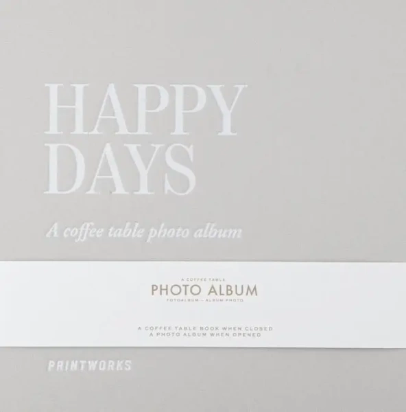Album na zdjęcia "Happy Days" jest mniejszą wersją osławionych fotoalbumów produkowanych przez PRINTWORKS. Ma on zdolność pomieścić jedno zdjęcie na stronie i przedstawia dodatkowe miejsce na notatki.
