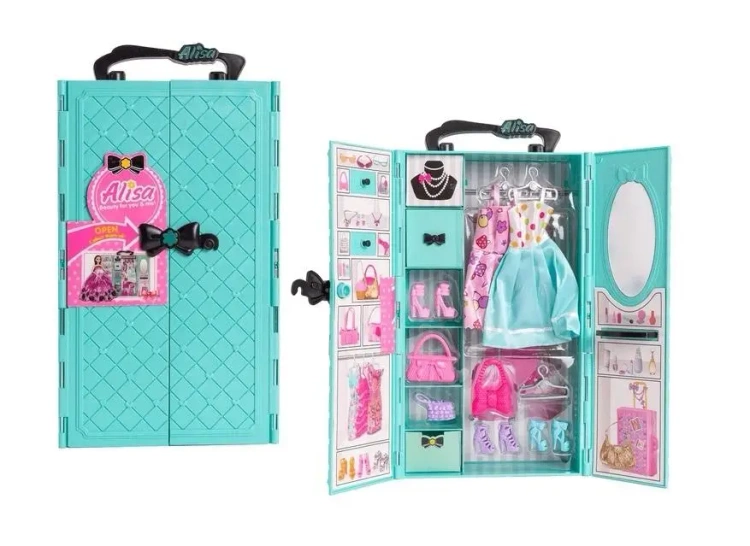 Prezentujemy niezbędny element wyposażenia dla lalek - niebieską garderobę z wyposażeniem, która pozwoli na zachowanie porządku we wszystkich akcesoriach. To otwierana, przestronna szafka, która swoim wyglądem nawiązuje do stylu prawdziwego mebla.