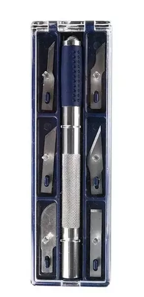 Nożyk rękodzielniczy "Hobby" z gumową rączką i zestawem 6 różnorodnych ostrzy w plastikowej obudowie
