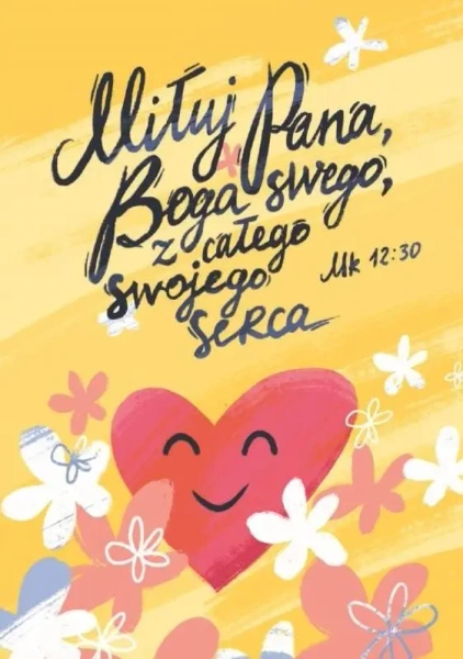 Pocztówka z kolorowanką - Miłuj Pana Boga swego - Maria Garcarz