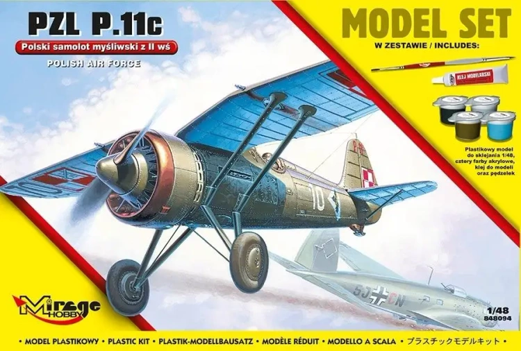Prezentowany model plastikowy do sklejania w skali 1:48 przedstawia historyczny polski samolot myśliwski PZL P-11c, który brał udział w II Wojnie Światowej. Komplet do sklejenia obejmuje: plastikowy model, kalkomanie umożliwiające wykonanie malowań w barwach polskiego lotnictwa oraz niezbędne akcesoria czyli klej, farby oraz pędzel. Zestaw ten jest przeznaczony dla modelarzy na poziomie początkującym oraz średnio zaawansowanym.