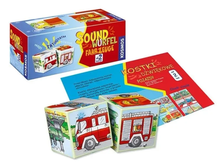Chociaż opakowanie kostek dźwiękowych "Pojazdy" jest w języku niemieckim, to jednak w środku znajduje się kolorowa instrukcja w języku polskim oraz niemieckim. Dzięki temu dzieci mają możliwość łatwego opanowania zasad zabawy, a także lepszego zrozumienia celu każdej z kostek. Wprowadź dziecko w świat pojazdów i dźwięków towarzyszących im na co dzień. Kostki dźwiękowe "Pojazdy" to doskonała zabawa, nauka i rozwój dla każdego malucha.EAN: 4002051697372