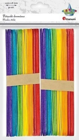 Drewniane patyczki proste 18x150mm mix kolor 50szt - Titanum