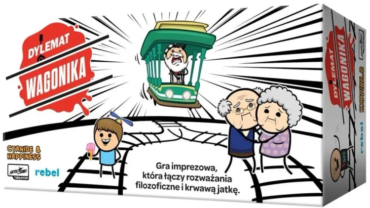 - Gra na wieczór z przyjaciółmi, która miesza filozoficzne rozważania z brutalną walką i zmusza uczestników do podejmowania trudnych moralnie decyzji. Karol Kolejarz spodziewał się zwykłego dnia, kiedy zaskoczyła go niespodziewana sytuacja. Pociąg, który prowadził, nagle wymknął się spod kontroli. Pędząca przed siebie śmiertelna machina zbliża się do rozwidlenia, a Karol musi szybko podjąć decyzję, którą ścieżkę obrać. Co gorsza, na każdym z torów znajdują się zupełnie nieświadomi ludzie... Gdzie polega gra? W każdej rundzie jeden z graczy wciela się w rolę maszynisty - zadanie polega na podjęciu decyzji, po którym torze przejedzie śmiertelna machina. Reszta graczy, podzielona na dwa zespoły, będzie próbowała przekonać maszynistę do przestawienia zwrotnicy i uśmiercenia tych, którzy są na innym torze. W tym celu będą wykorzystywali karty z postaciami i modyfikatorami - dobrymi i złymi czynami, które zostały popełnione przez ludzi, którzy zostali uwięzieni na torach. Wszystko po to, aby uratować "swoich".Czemu pokochasz "Dylemat wagonika"?