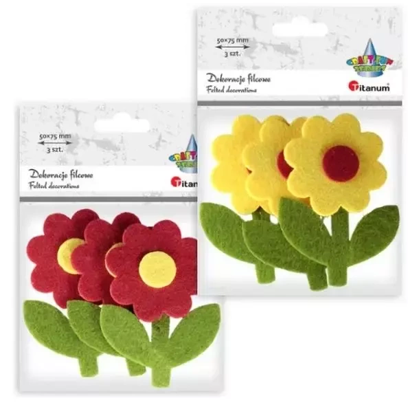 Filcowe kwiatki z łodygą 3D mix 3szt - Titanum