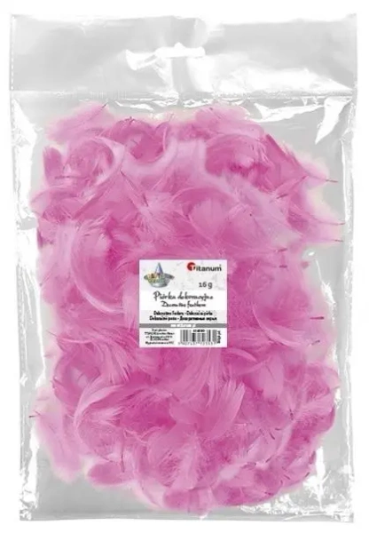 Prezentując jasnoróżowe piórka puchowe o wadze 16g od marki Titanum, które są idealnym dodatkiem do różnych projektów kreatywnych.
