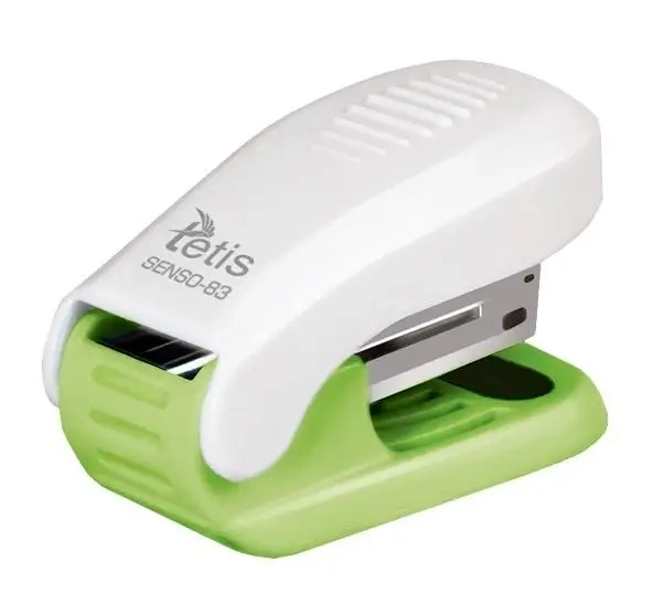 Odkryj innowacyjny zszywacz Senso 83 Tetis w ożywczym kolorze zielonym. Wykonany z wysokiej jakości tworzywa sztucznego, zapewnia elegancki i wytrzymały wygląd. Charakteryzuje go zamknięty system zszywania, co dodatkowo wpływa na trwałość i bezpieczeństwo używania.Doskonała funkcjonalność
