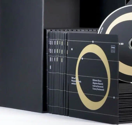 BOX „100 na 100” to ekskluzywne wydawnictwo, dokumentujące ostatnie 100 lat polskiej muzyki. Na prestiżową publikację w polskiej i angielskiej wersji językowej złożą się następujące elementy: 36 płyt CD z nagraniami wszystkich utworów z listy „100 na 100”. Aż 60 rejestracji zostało wykonanych na zlecenie PWM-u, a w to gigantyczne przedsięwzięcie zaangażowali się najwybitniejsi polscy artyści. Pozostałe nagrania zostały pozyskane z archiwów Polskiego Radia i Polskich Nagrań. Wśród orkiestr, chórów i zespołów zaangażowanych w przedsięwzięcie znalazły się m.in. Filharmonia Narodowa, Narodowa Orkiestra Symfoniczna Polskiego Radia, Polska Orkiestra Radiowa, Narodowe Forum Muzyki, Orkiestra Teatru Wielkiego–Opery Narodowej, Sinfonia Iuventus, Sinfonia Varsovia, Orkiestra Aukso, Sinfonietta Cracovia, Kwartet Śląski, Chór Polskiego Radia, Camerata Silesia. Z dyrygentów warto wymienić maestrów Łukasza Borowicza, Jacka Kaspszyka, Jana Krenza, Jerzego Maksymiuka, Marka Mosia, Grzegorza Nowaka, Antoniego Wita. Do grona solistów należą m.in. Joanna Freszel, Tomasz Konieczny, Aleksandra Kurzak, Olga Pasiecznik, Arnold Rutkowski, Agata Zubel. (Nagrania, które PWM zrealizowało w ramach projektu są już dostępne w muzycznych serwisach streamingowych takich jak Spotify czy Apple Music) Bogato ilustrowana książka „100 lat z dziejów polskiej muzyki” pióra Danuty Gwizdalanki, która w sposób przystępny i atrakcyjny opowiada o najnowszej polskiej twórczości. „Zeszyty dekad” – dziesięć publikacji, w których uznani muzykologowie i publicyści muzyczni kreślą portrety kompozytorskie i odkrywają tajniki związane z powstaniem utworów.