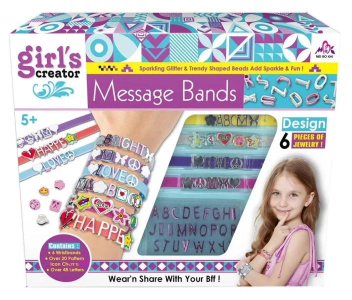 Zestaw do projektowania bransoletek składający się z 6 bransoletek, 20 elementów charms, liter oraz naklejek, idealny dla dziewczyn w wieku 5 lat i starszych. Wymiary opakowania to 32 x 5 x 26 cm. Stwórz własne, unikalne bransoletki dzięki różnorodnym elementom charms, literkom i naklejkom. Projektuj i eksperymentuj z kolorami oraz wzorami, tworząc niepowtarzalne ozdoby na rękę. Zapraszaj przyjaciółki do wspólnej zabawy i wymieniajcie się stworzonymi przez was bransoletkami. Zestaw Askato to doskonały sposób na rozwijanie kreatywności i manualnych umiejętności u dzieci. Z łatwością zapewni długie godziny twórczej i edukacyjnej zabawy.EAN: 6901440116129