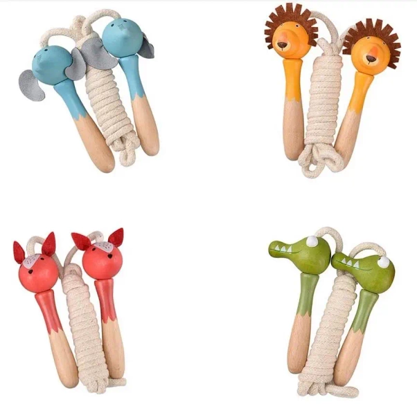 Przyciągające wzrok skakanki, które mają drewniane uchwyty w postaci uroczych stworzeń, są doskonałym narzędziem do zachęcania do zajęć ruchowych i poprawy kondycji.Skakanka z drewnianym uchwytem